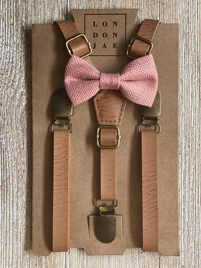 Wedding Bow Tie Set Peach Pink Wedding Bow Tie \u0026 Suspenders Set - Adjustable For Groomsmen Or Groom Clip On Bow Ties bow tie set for groomsmen