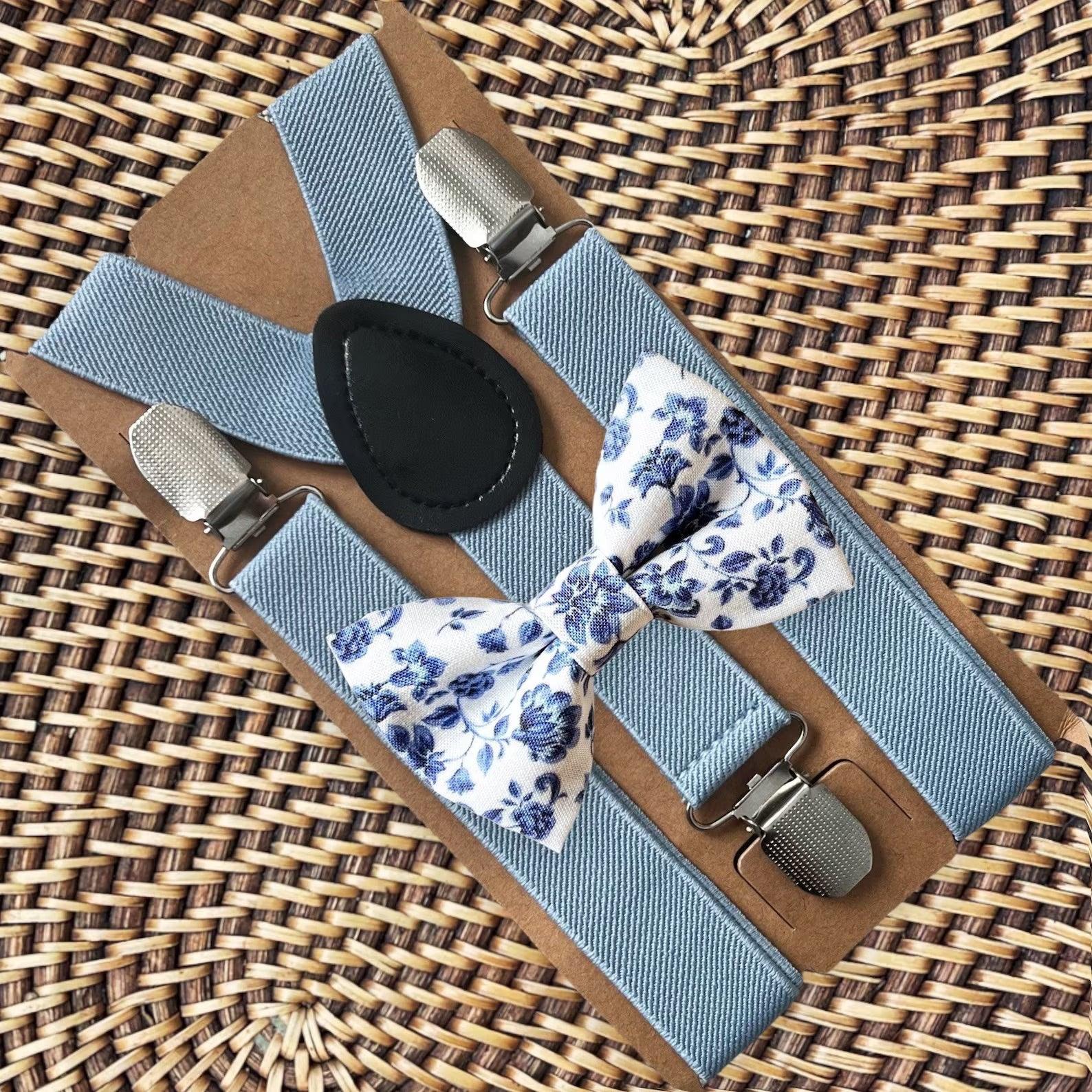Dusty Blue Wedding Party Dusty Blue Floral Suspenders \u0026 Bow Tie Set - Adjustable Groomsmen Suspenders For Weddings Groomsmen Gift Accessories bow tie set for groomsmen