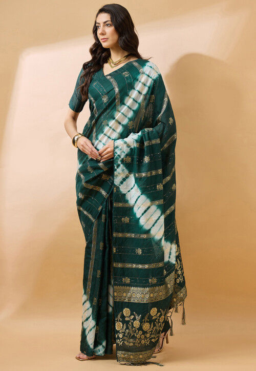 Buy Tie Dyed Cotton Silk Saree in Teal Green Online : SUY111 - Utsav Fashion how to tie kuchu for silk saree