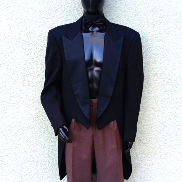 PIERRE CARDIN MEN'S VINTAGE BLACK FORMAL HAND TAILORED TUXEDO TAIL COAT pierre cardin bow tie