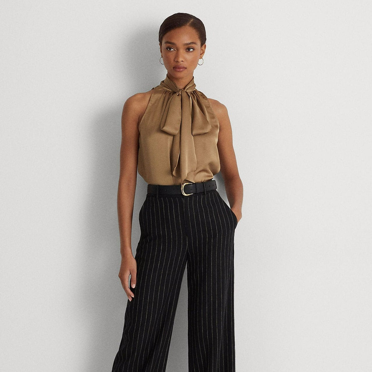 Lauren Ralph Lauren Tie-Neck Charmeuse Sleeveless Blouse ralph lauren tie blouse