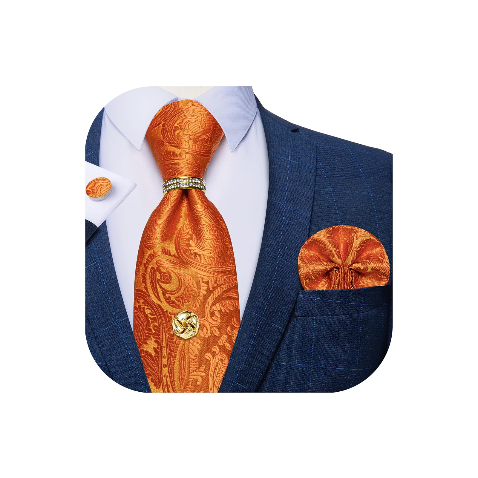 MJWDP Classic Orange Striped Men Tie Brooch Set Silk Tie For Men Necktie Handkerchief Cufflink Designer Tie (Color : A, Size : One size) : Amazon.co.uk: Fashion designer orange ties