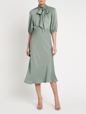Rebecca Taylor Satin Tie Neck Dress - green | Garmentory rebecca taylor tie front dress