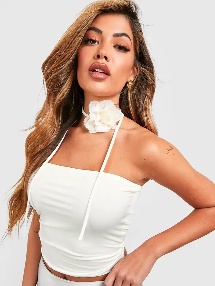 Buy Boohoo Tube Crop Top With Corsage Neck Tie-Up - Tops for Women 24803292 | Myntra corsage neck tie