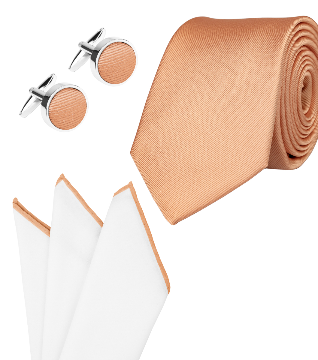 Peach Fuzz necktie set with pocket square and cufflinks | bubibubi.store peach tie set