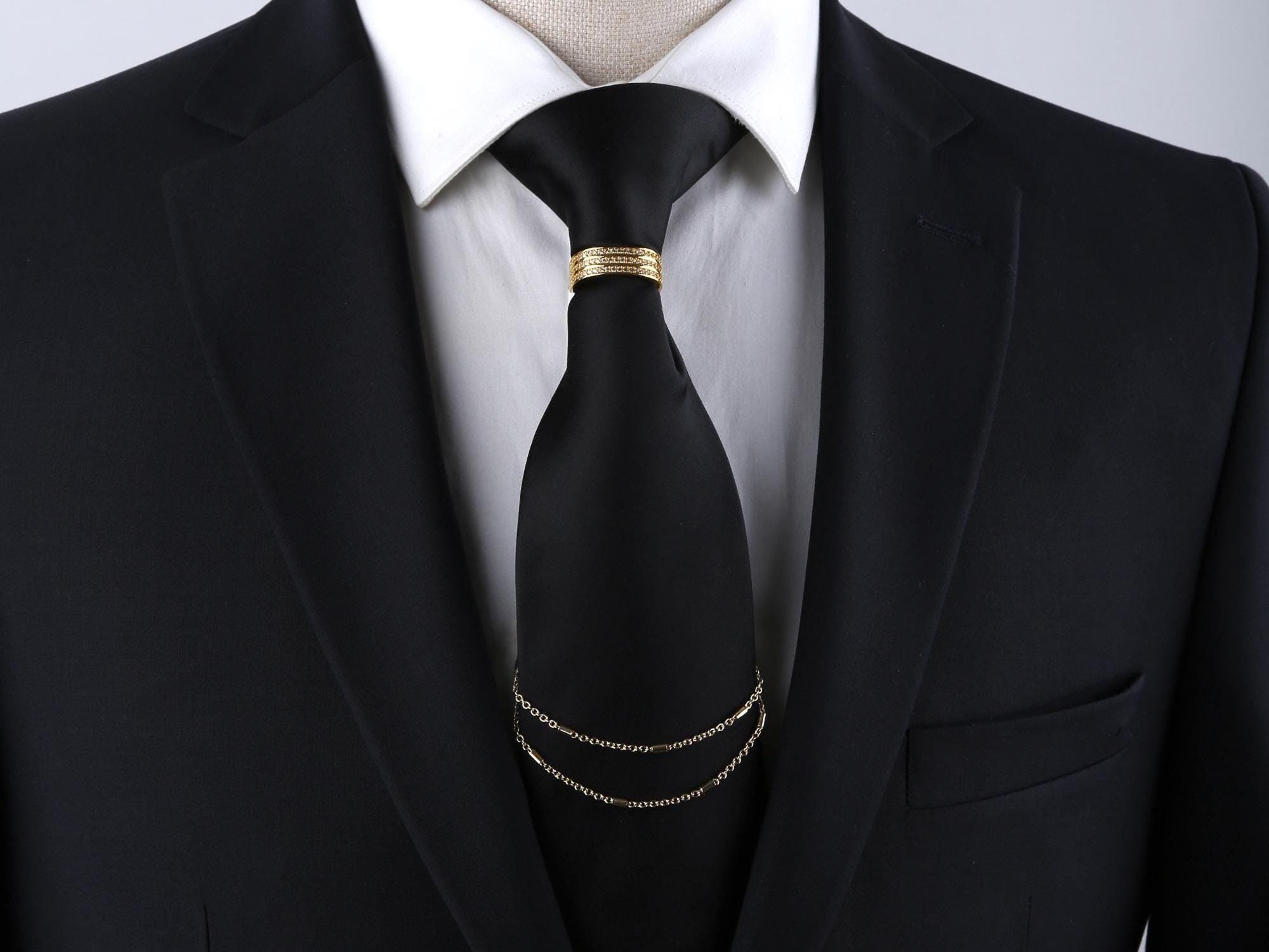 Elegant Necktie Ring With Chain : Men's Suit's Necktie Accessory - Etsy necktie ring clasp