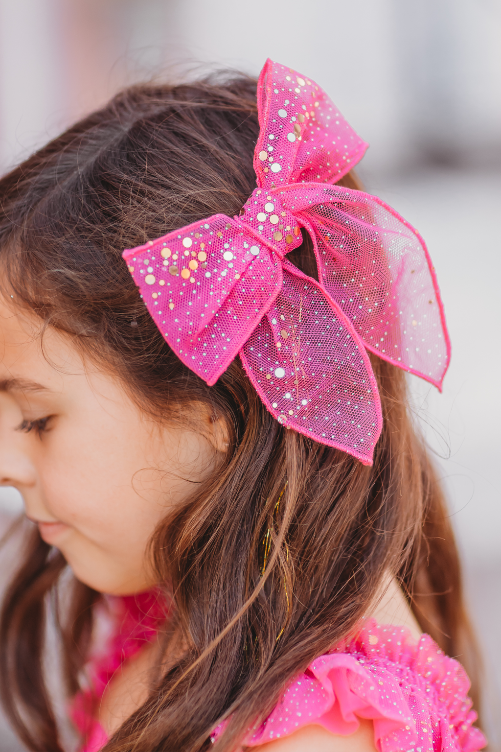 Glimmer Tulle Hair Bow - Festive Fuchsia hand tied hair bow