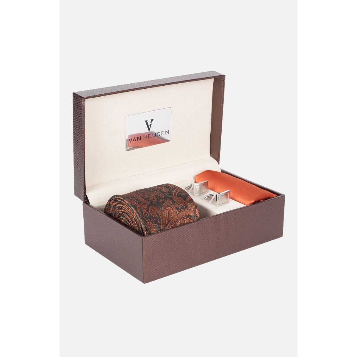 Buy Men Brown Party Tie Pocket Square And Cufflink Online - 40074754 | Van Heusen van heusen tie and cufflink set price