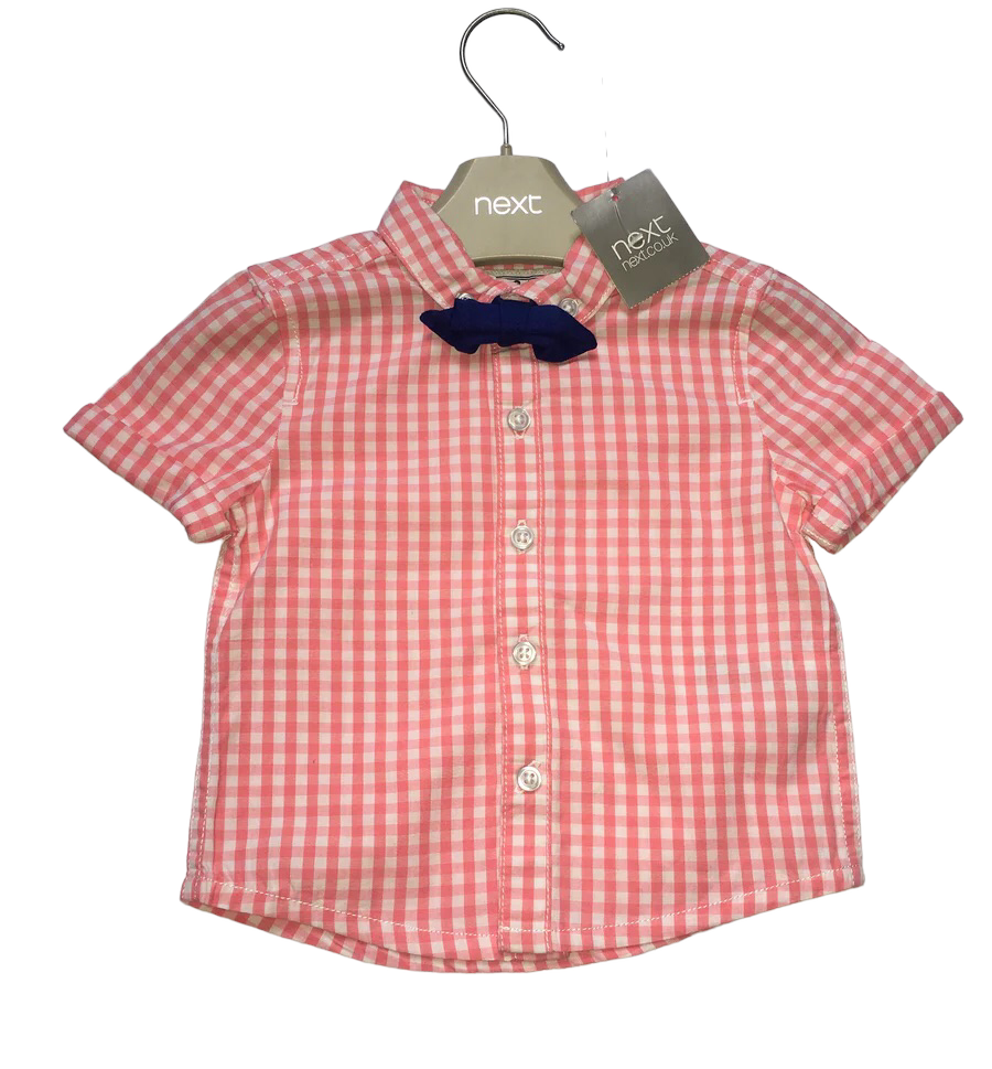 Brand New Next Pink Gingham Check Shirt \u0026 Bow Tie Outfit Set - Boys 3- – Growth Spurtz bow tie shirt next