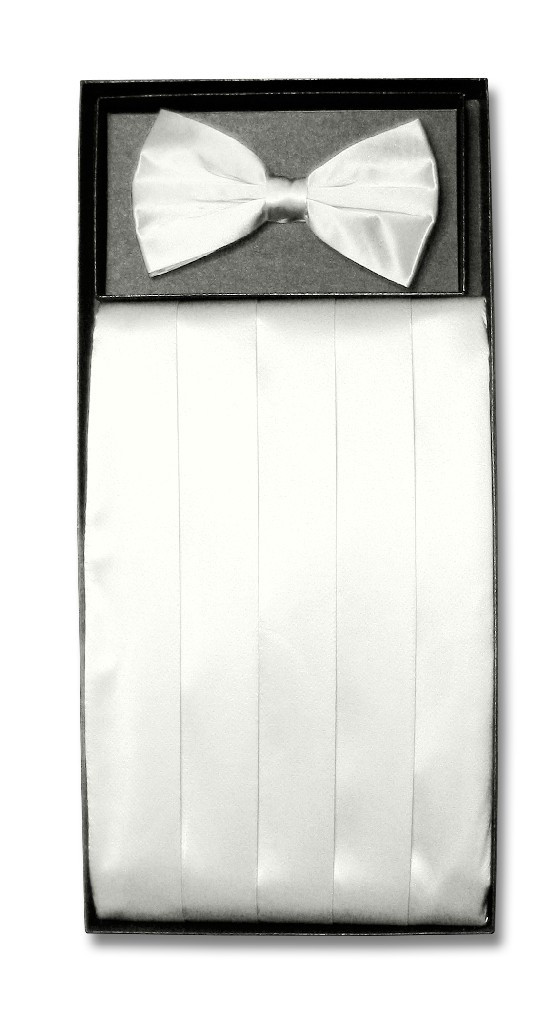 Silk Cumberbund BowTie Solid White Color Mens Cummerbund Bow Tie Set bow tie cumberbund