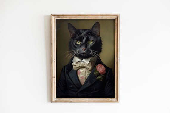 Elegant Black Cat Portrait, Suit, Bowtie, Cat Lover Wall Art - Etsy black cat with bow tie