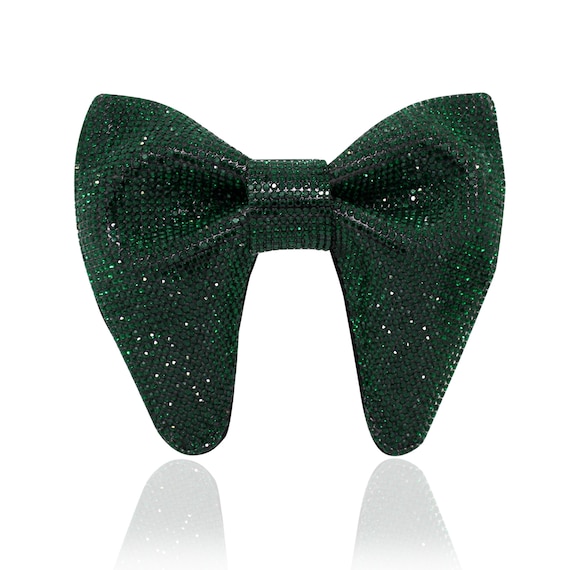 Tuxedo Dress Women Set - Sparkling Pre-Tied With Pocket Square (Emerald Green) Rhinestone Bow Tie women green bow tie