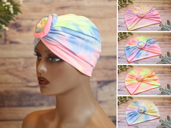 Tie Dye Pre Knotted Turban Headwrap for Woman. Adult Head Wrap. Headwrap Tie Dye Print. Chemo / Alopecia Cap. Gift for Women. - Etsy Israel tie dye turban head wrap