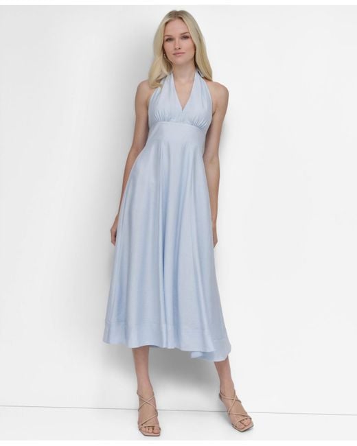 DKNY Halter V-neck Tie-back Midi Dress in Blue | Lyst dkny tiered tie neck dress
