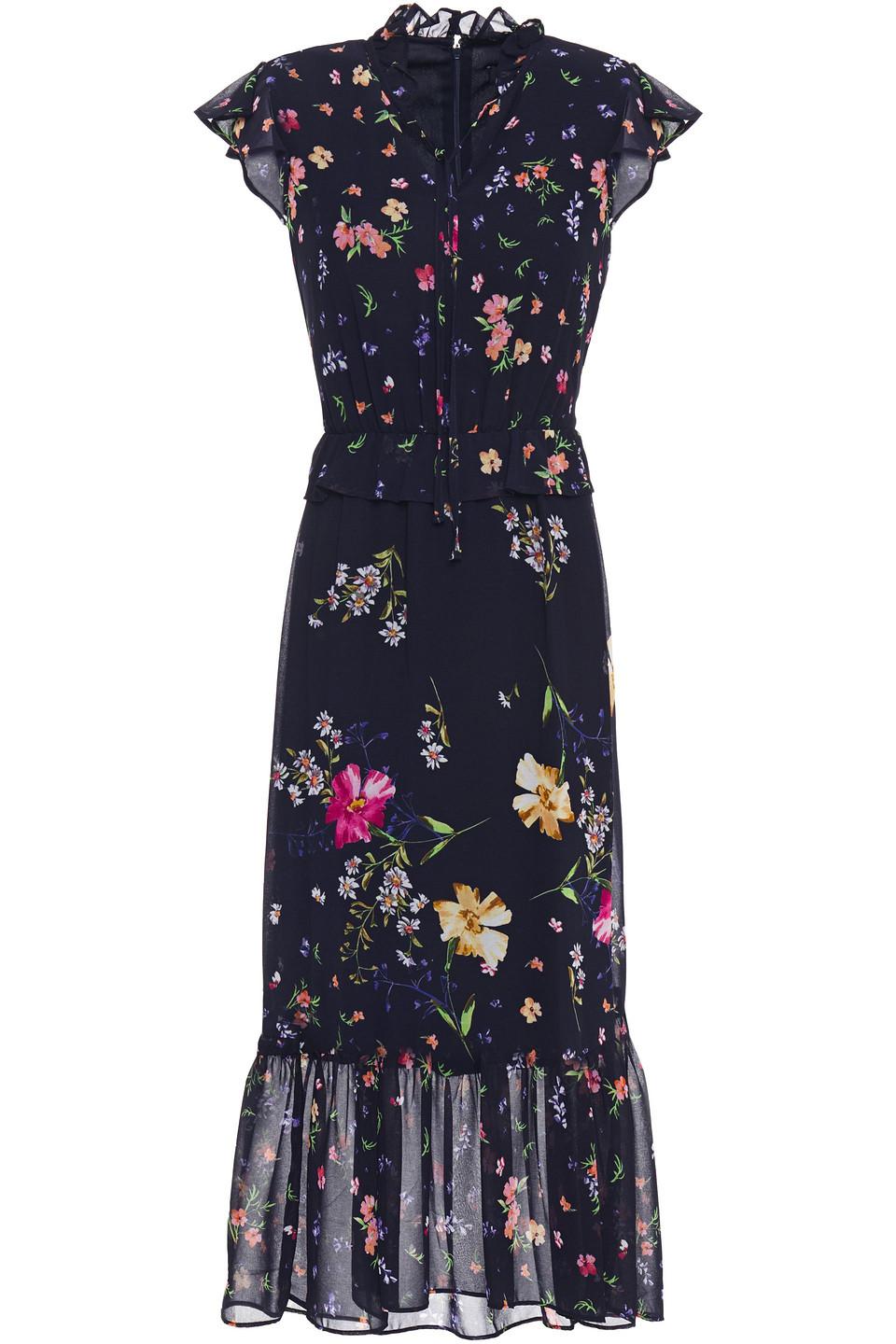 DKNY Fluted Tie-neck Floral-print Georgette Midi Dress in Blue | Lyst UK dkny tiered tie neck dress