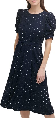 DKNY Womens Black Ruffled Lined Tie Neck Tiered Skirt Polka Dot Short Sleeve V Neck Above The Knee Fit + Flare Dress Petites UK Size: 14 : Amazon.co.uk: Fashion dkny tiered tie neck dress