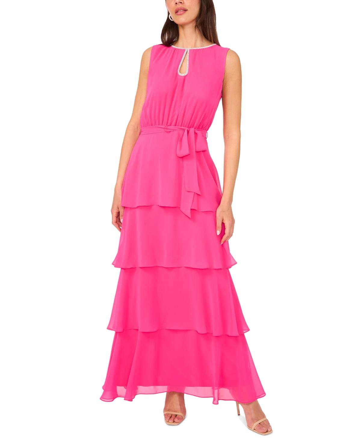 msk sleeveless tie neck tiered maxi dress
