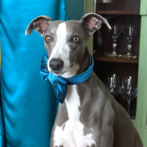 Greyhound Bow Tie VELVET PET BOW TIE Dog Cat Pet Bow Tie Collar In Teal Blue greyhound bow tie