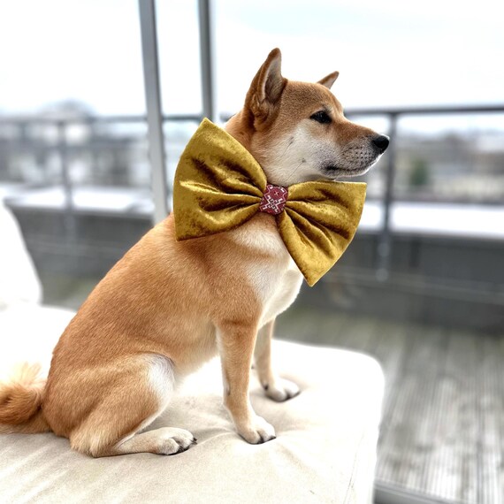 Yellow Velvet Bow Tie for a Dog in Large Size, Oversize Christmas Bow for Dog Collar With Bright Ribbon - Etsy yellow bow tie for dogs