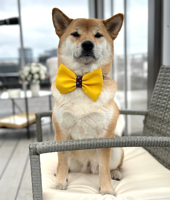Yellow Bow Tie for a Dog, Pet Collar Bow With Bright Blue Ribbon - Etsy yellow bow tie for dogs