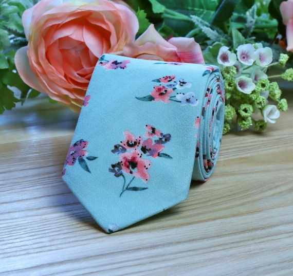 EUCALYPTUS BLUE Floral Tie CORAL Flowers Men's Skinny Tie Pale Mint Floral Peach Flowers Ties Groom Cotton Special Order - Etsy Canada peach and mint tie