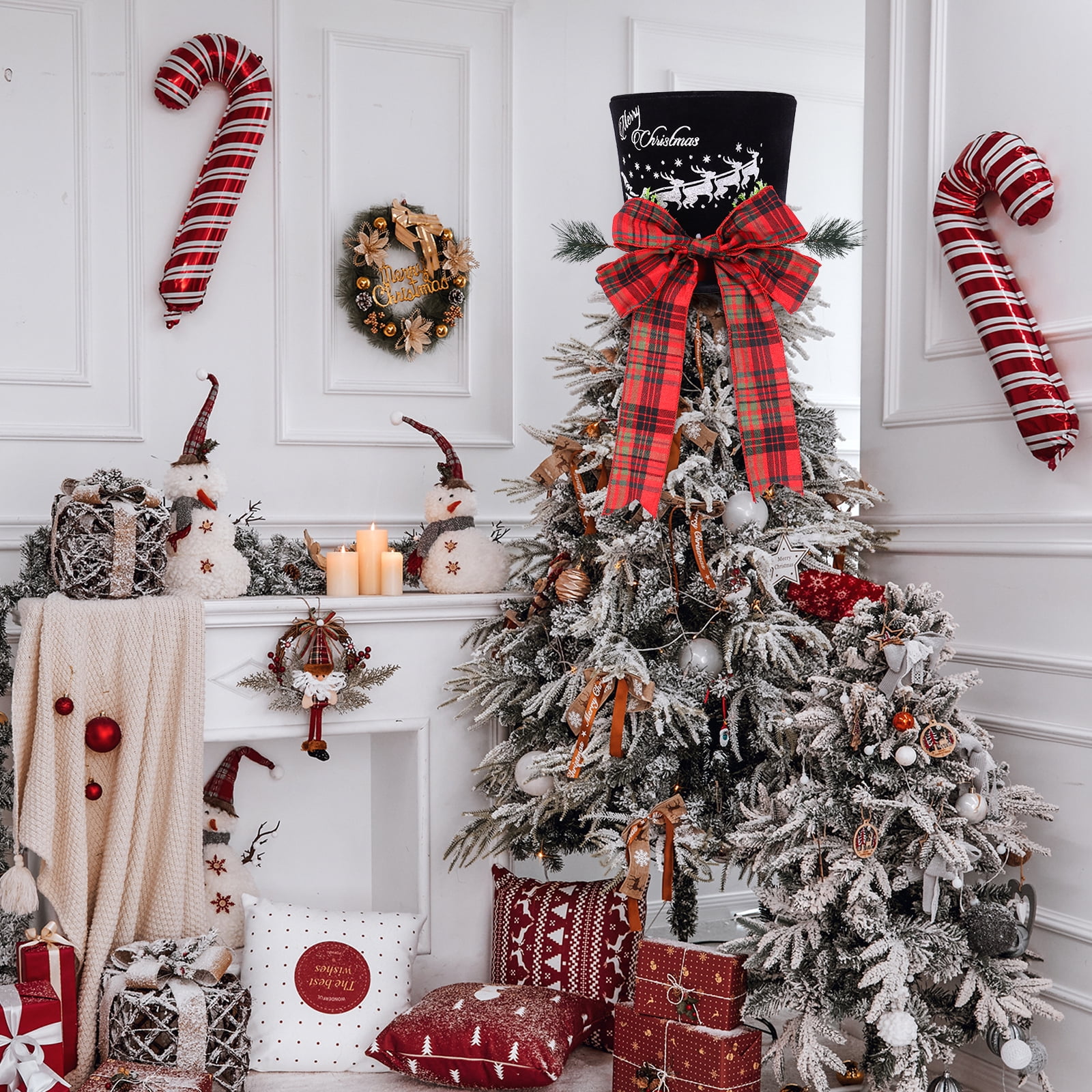Buy Yoochee Christmas Tree Topper Hat, Black Velvet Xmas Tree Toppers with Classical Buffalo Plaid Big Bow tie and Lengthened Ribbon, Tree Topper for Christmas Holiday Party Home Decorations, Xmas Decor Online