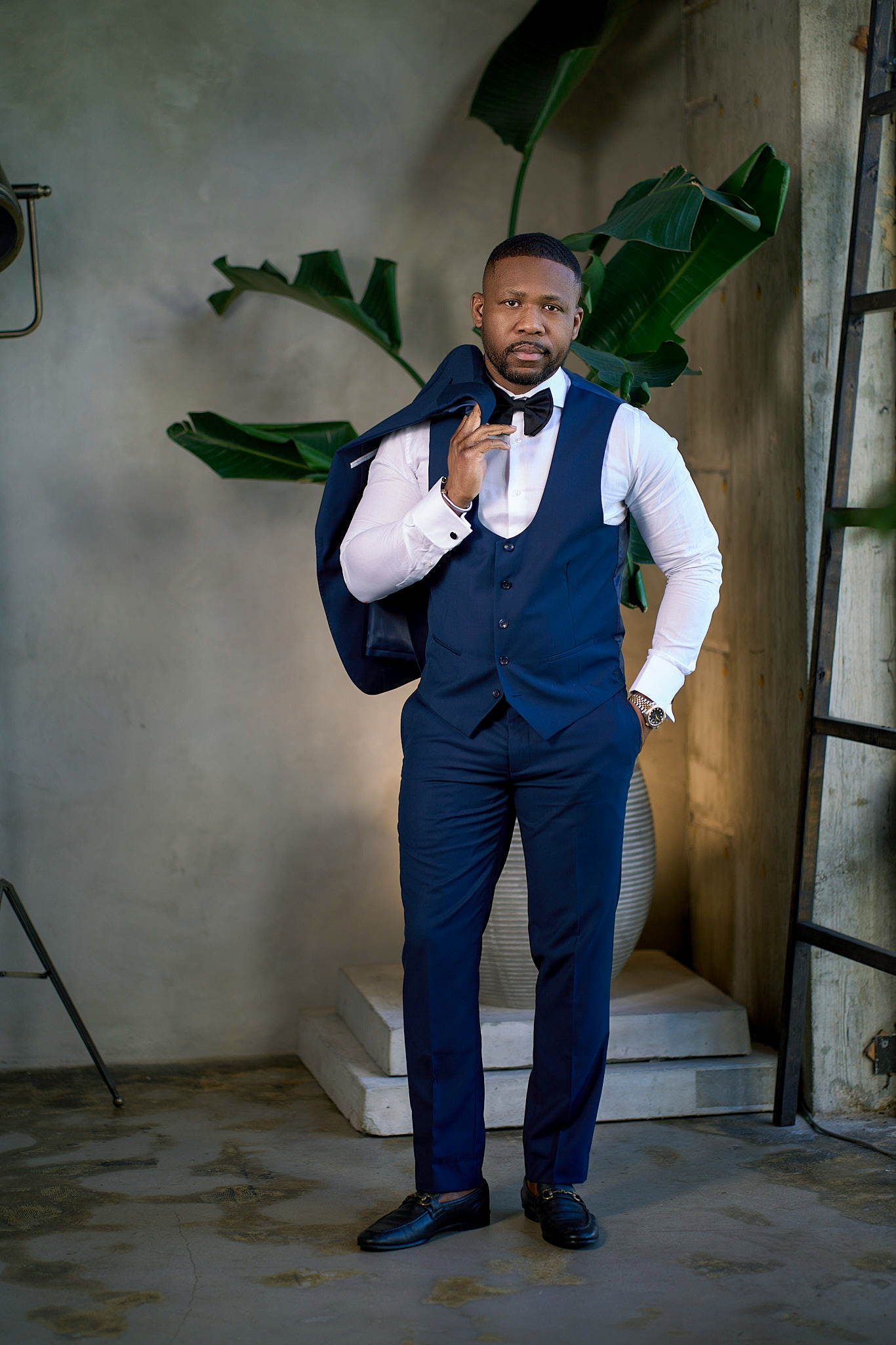blue tie and vest