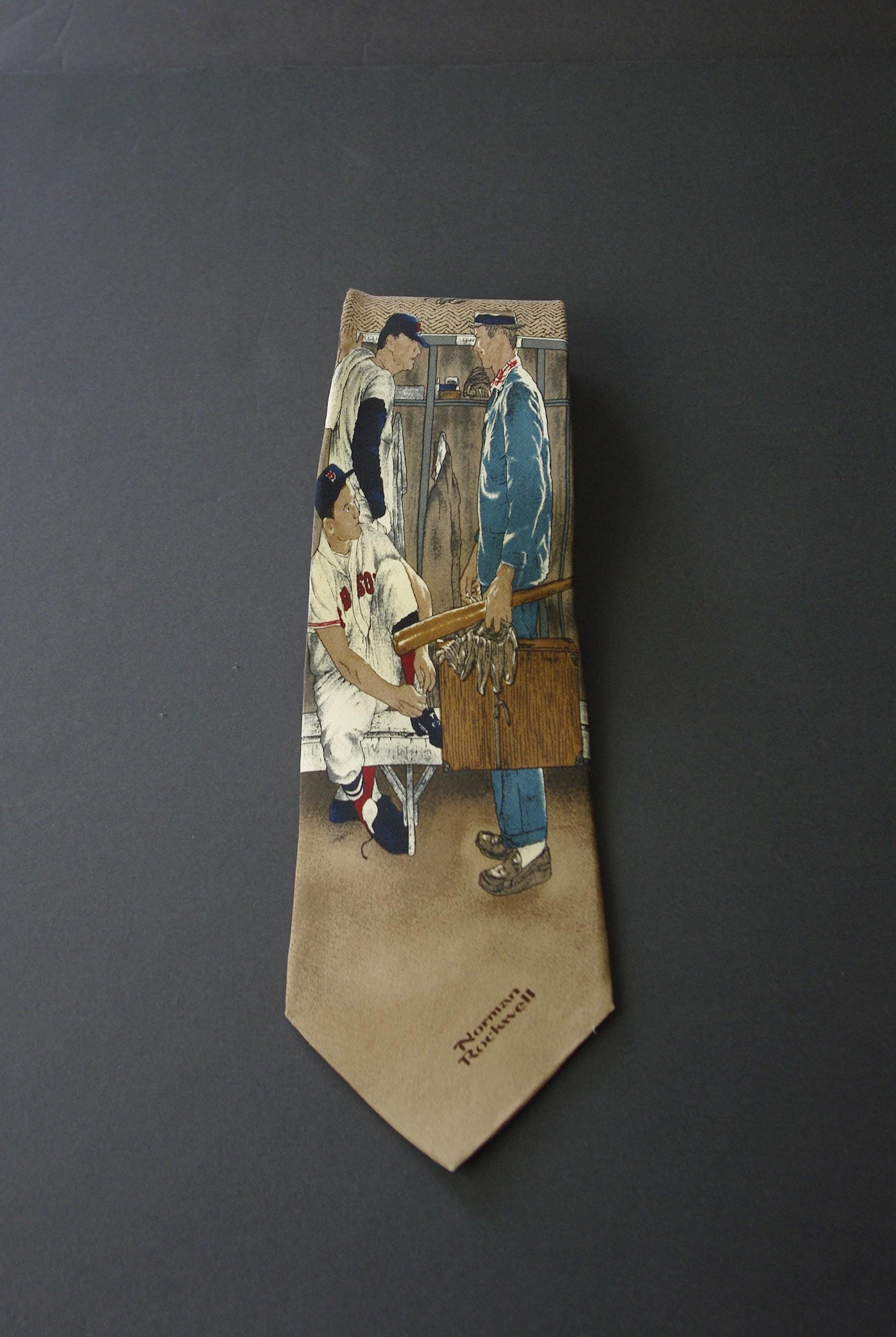 Vintage 1995 Norman Rockwell Saturday Evening Post Boston Red Sox Silk Necktie norman rockwell neckties