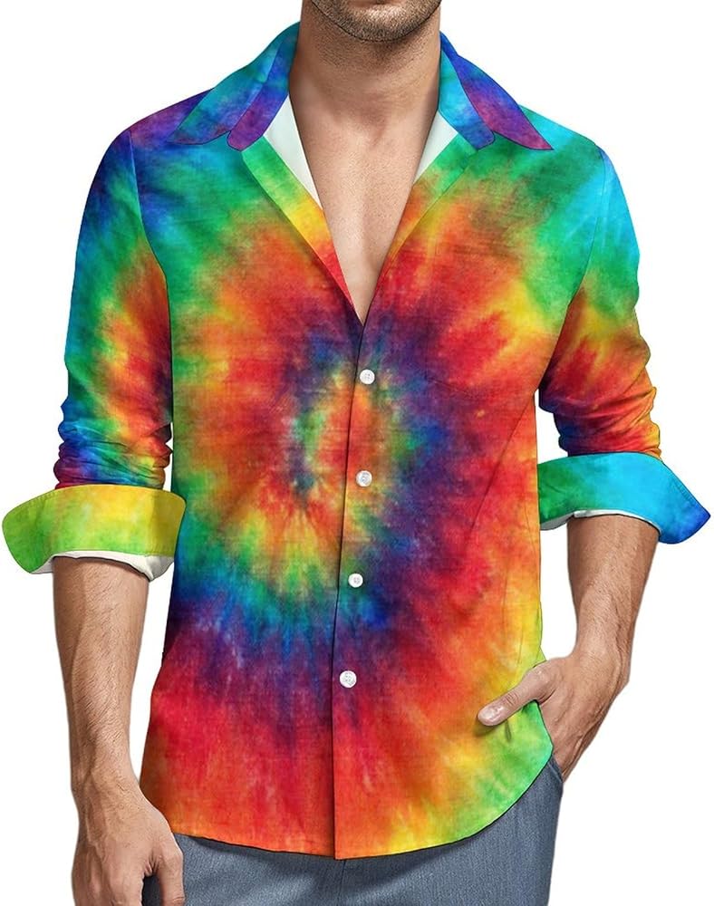 Amazon.com: MENRIAOV Tie Dye Mens Graphic Long Sleeve Button Down Shirt Fashion Dress Shirt XS : Clothing, Shoes \u0026 Jewelry tie dye long sleeve men