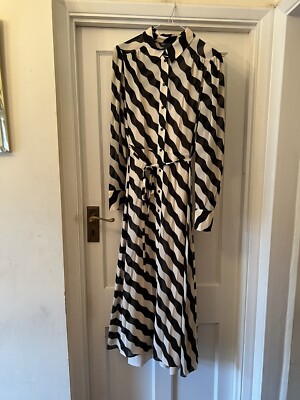 M\u0026amp;s Collection Tie Front Tee Dress New M\u0026S Collection Black White Stripe Design Midi Dress,Slip Tie,UK 12R UK m&s black tie dresses