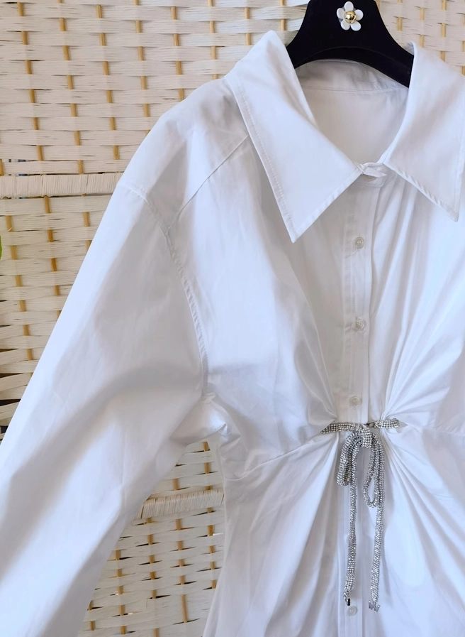 White Tie-Waist Shirt Dress | Jihyo - Twice - Fashion Chingu white tie waist shirt