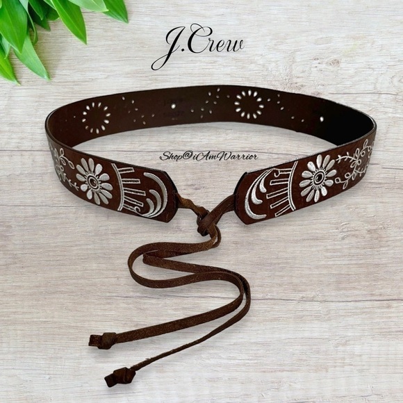 J.Crew genuine leather boho floral embroidered leather tie belt *shop@iamwarrior boho tie belt