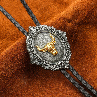 Gold Bull Head Mens BOLO Tie Clip PU Leather Western Cowboy Wedding Necklace | eBay UK western tie tacks