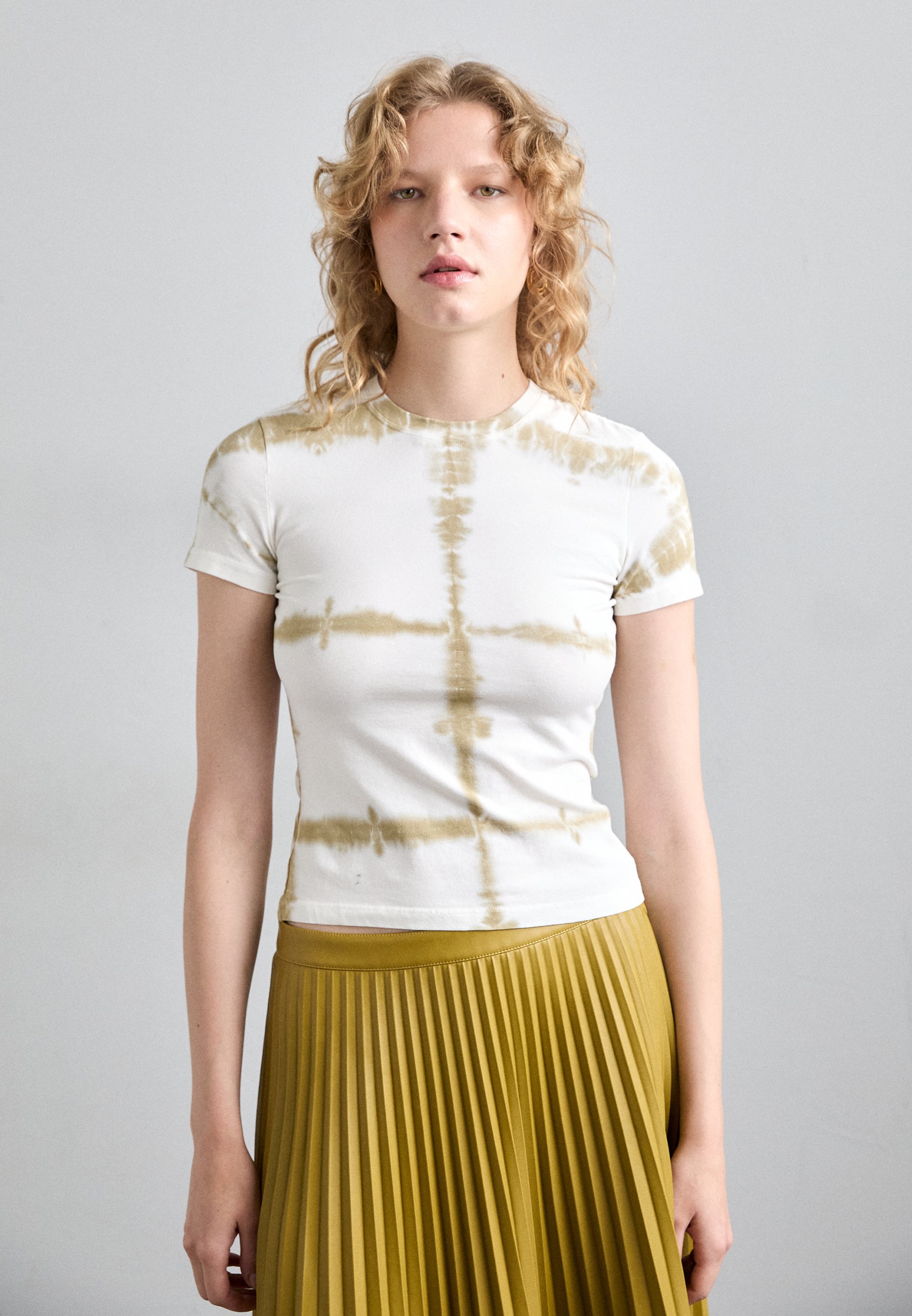 Proenza Schouler White Label BREWER IN GRID TIE DYE - Print T-shirt - white/khaki/multi-coloured - Zalando.ie proenza schouler white label tie dye cotton t shirt