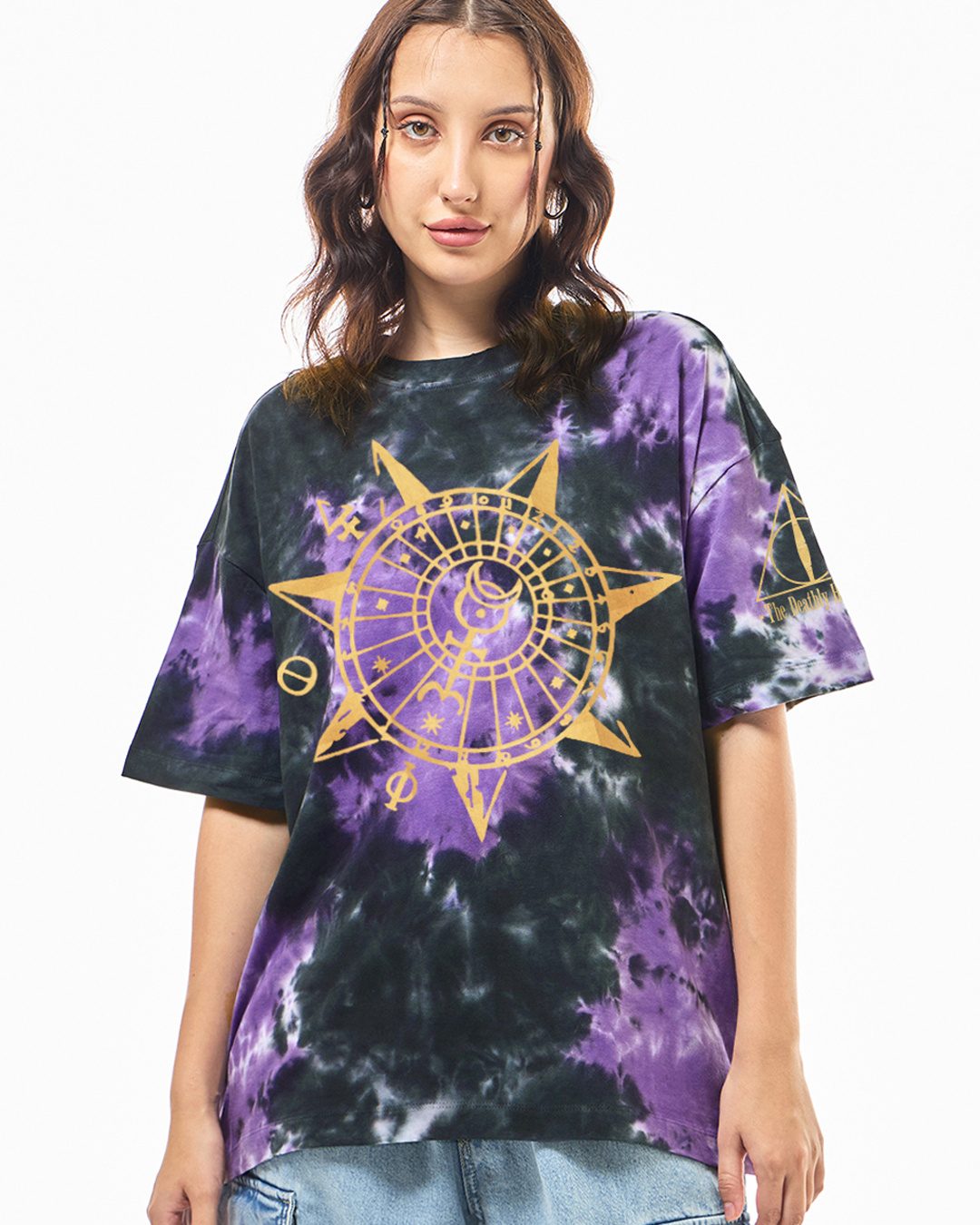 Women's Oversized Graphic Tee Buy Women's Black \u0026 Purple Hallows Graphic Printed Tie \u0026 Dye Oversized Oversized T-shirt Women purple tie dye shirt women's