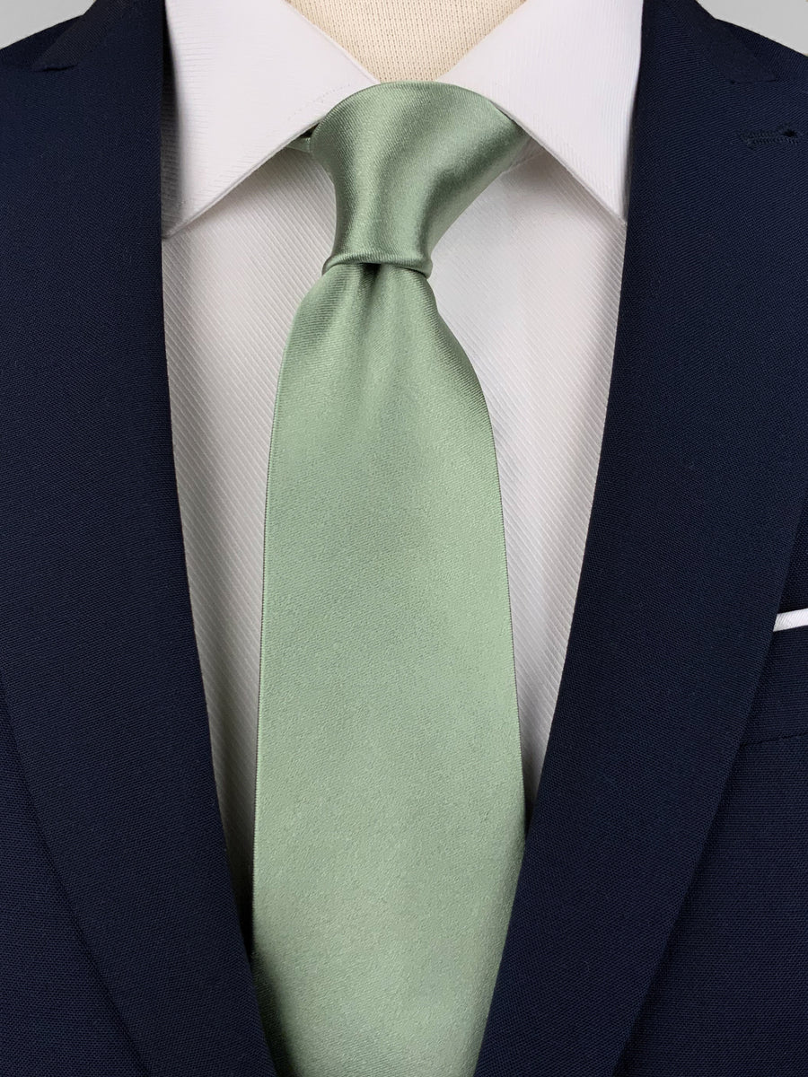 Sage Green Mulberry Silk Satin Tie | Knotting Club mint tie with navy suit