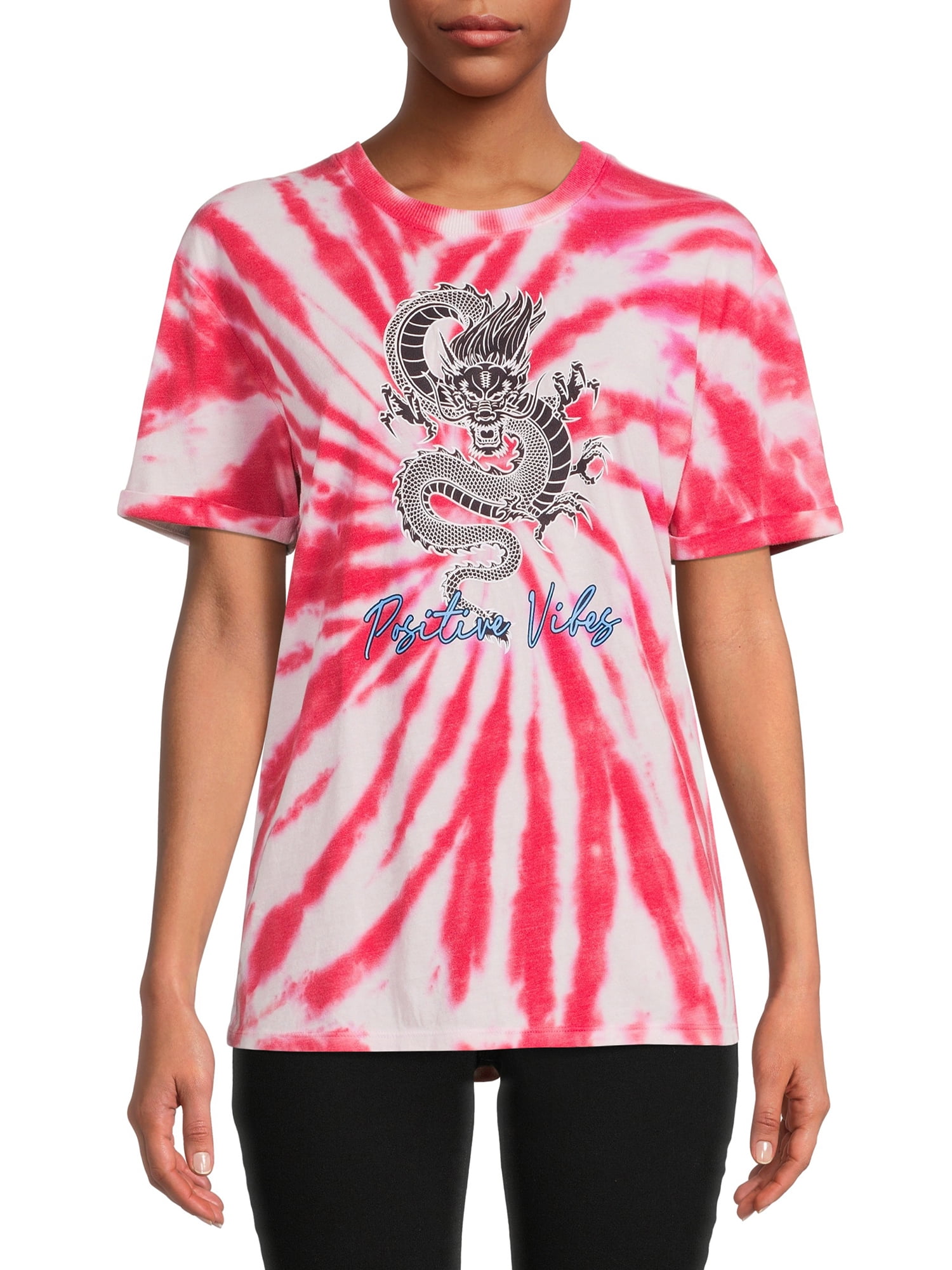 No Boundaries Juniors' Tie Dye Boyfriend T-Shirt, Graphic Tee, Laidback Fun - Walmart.com juniors tie dye shirt