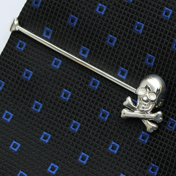 Skull and Bones Tie Bar Clip, Sterling Silver, Handcrafted - Etsy Australia skull and crossbones tie clip