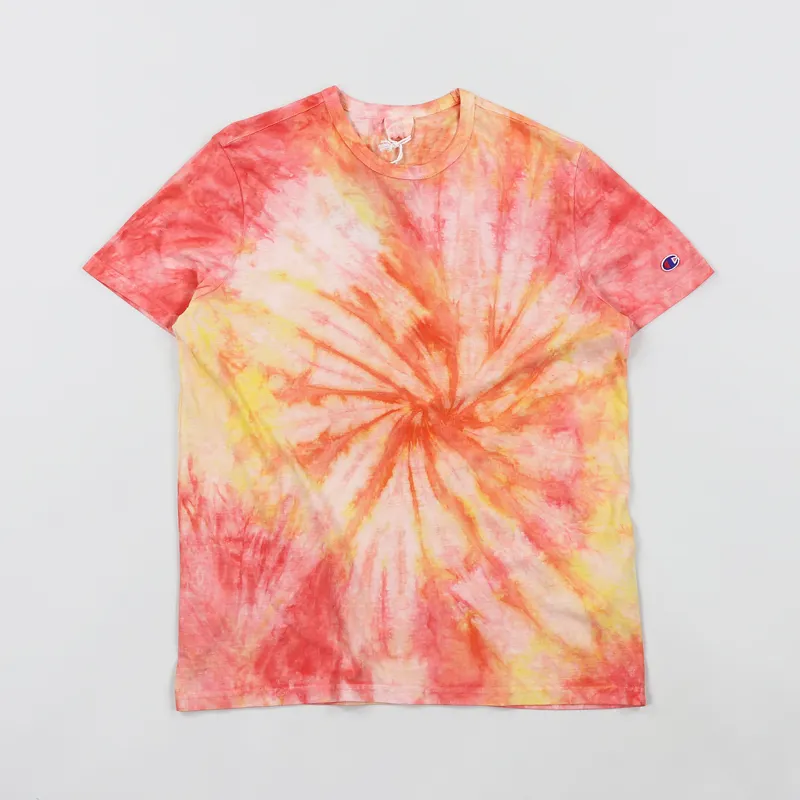 Champion Reverse Weave Crew Neck Tie Dye T Shirt Peach Orange t shirt champion tie dye