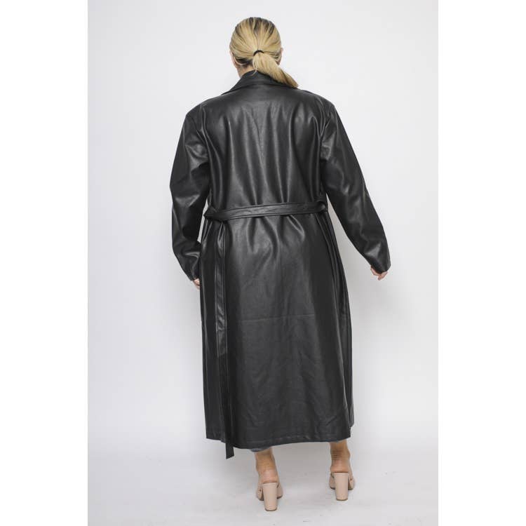 Wholesale PLUS SIZE PU LEATHER COLLARED TIE WAIST LONGLINE TRENCH COAT for your store - Faire plus size tie waist coat