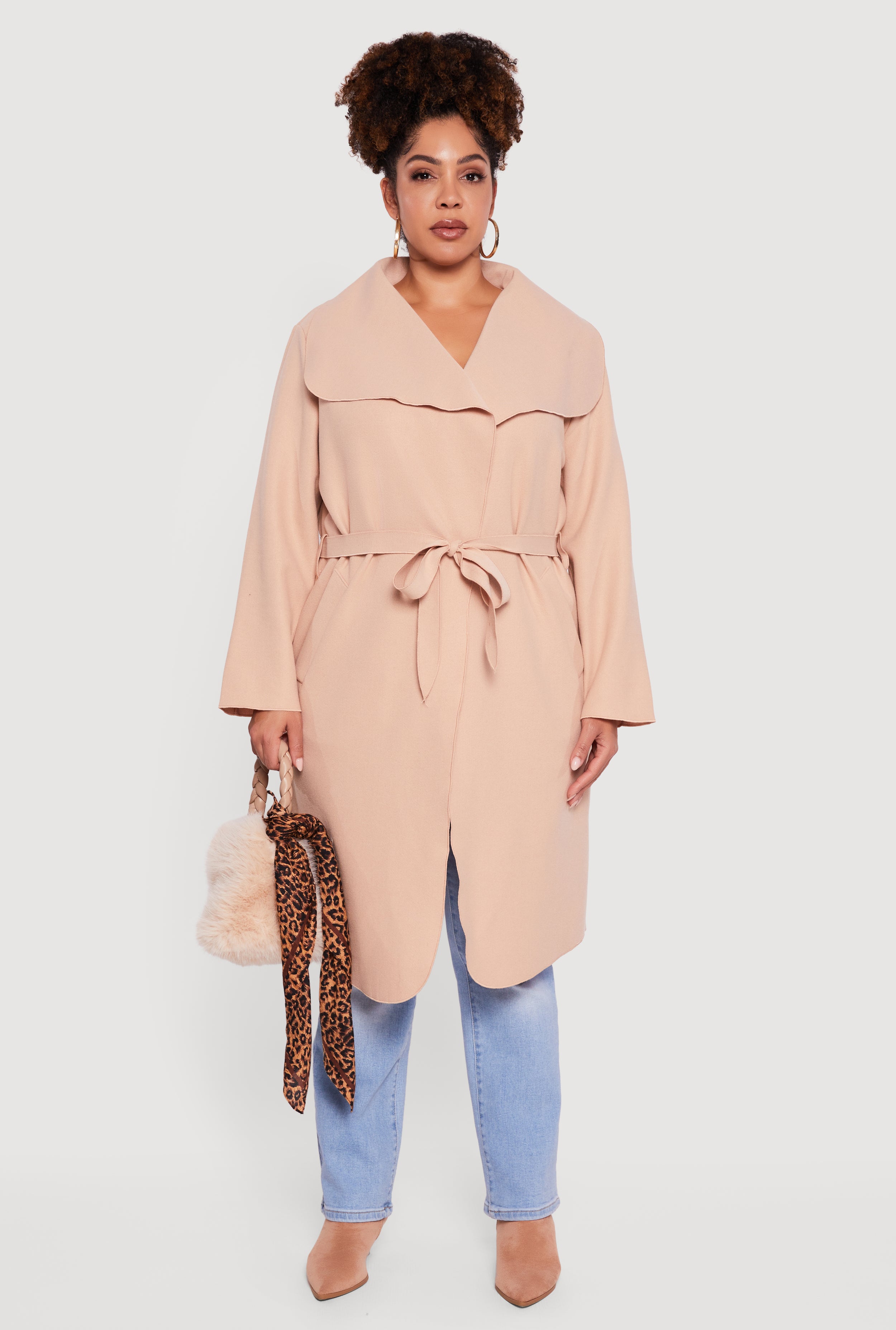 plus size tie waist coat