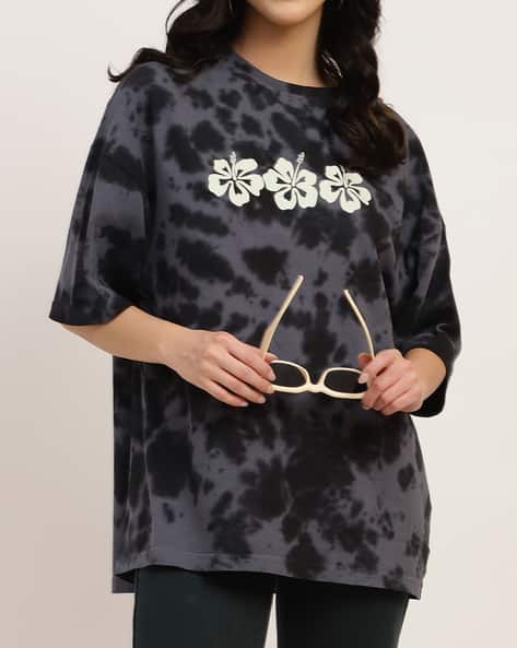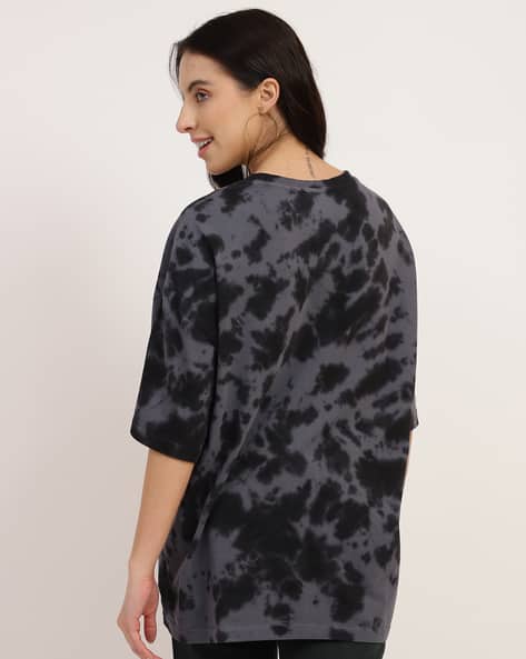 Buy Black Tshirts for Women by Shein Online | Ajio.com dark grey tie dye print oversize drop shoulder shirt