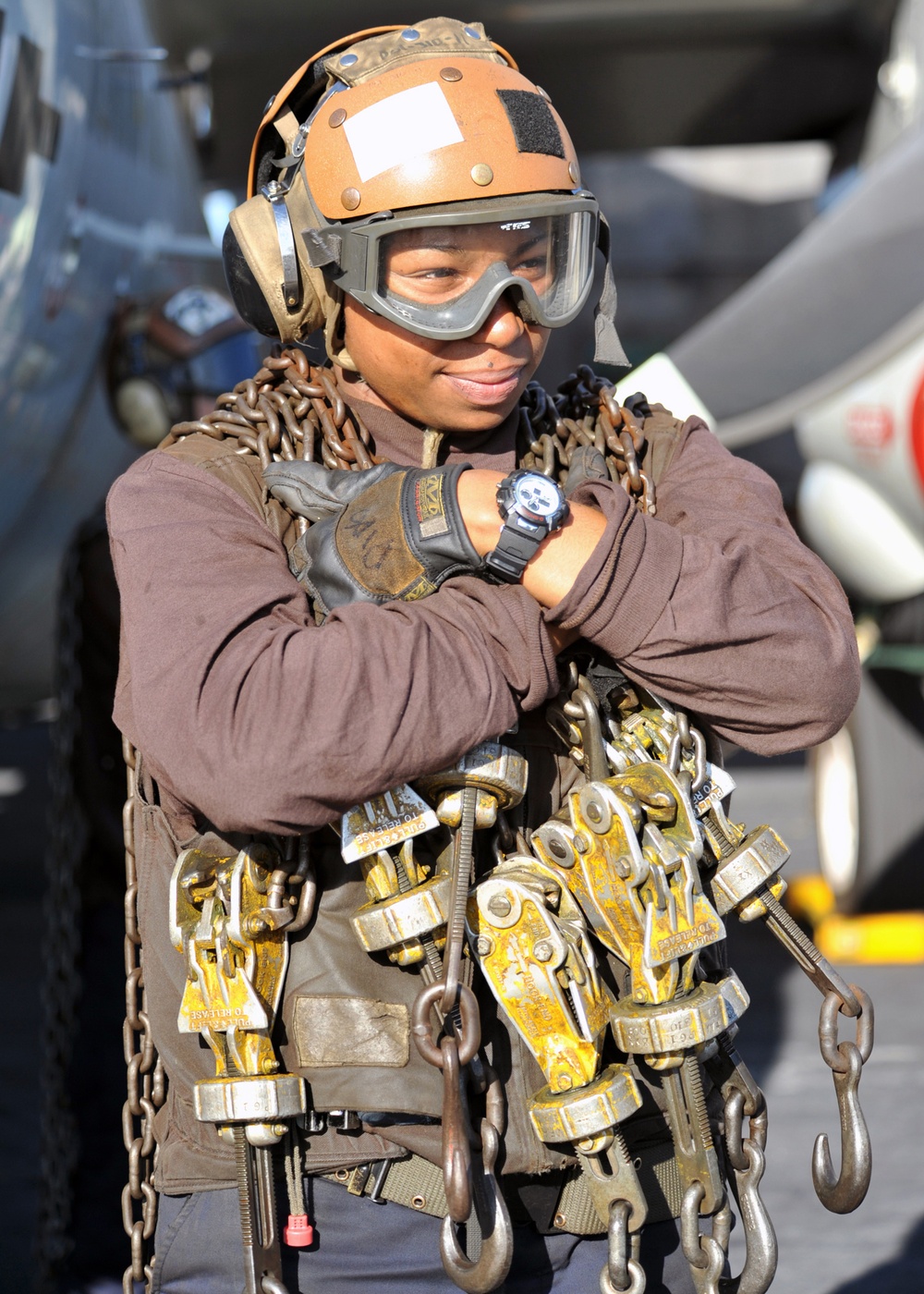 DVIDS - Images - A plane captain carries tie-down chains across the flight deck. tie down plane