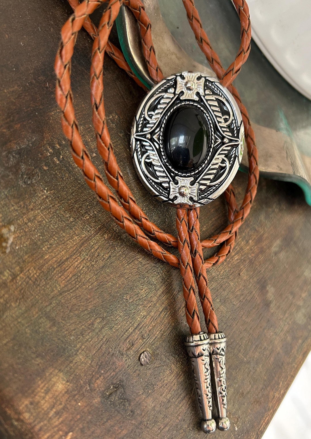 Natural Stone Bolo Western Bolo Tie With Natural Stone - Celtic Style Genuine Leather Rope Mens Tie cowboy tie rope