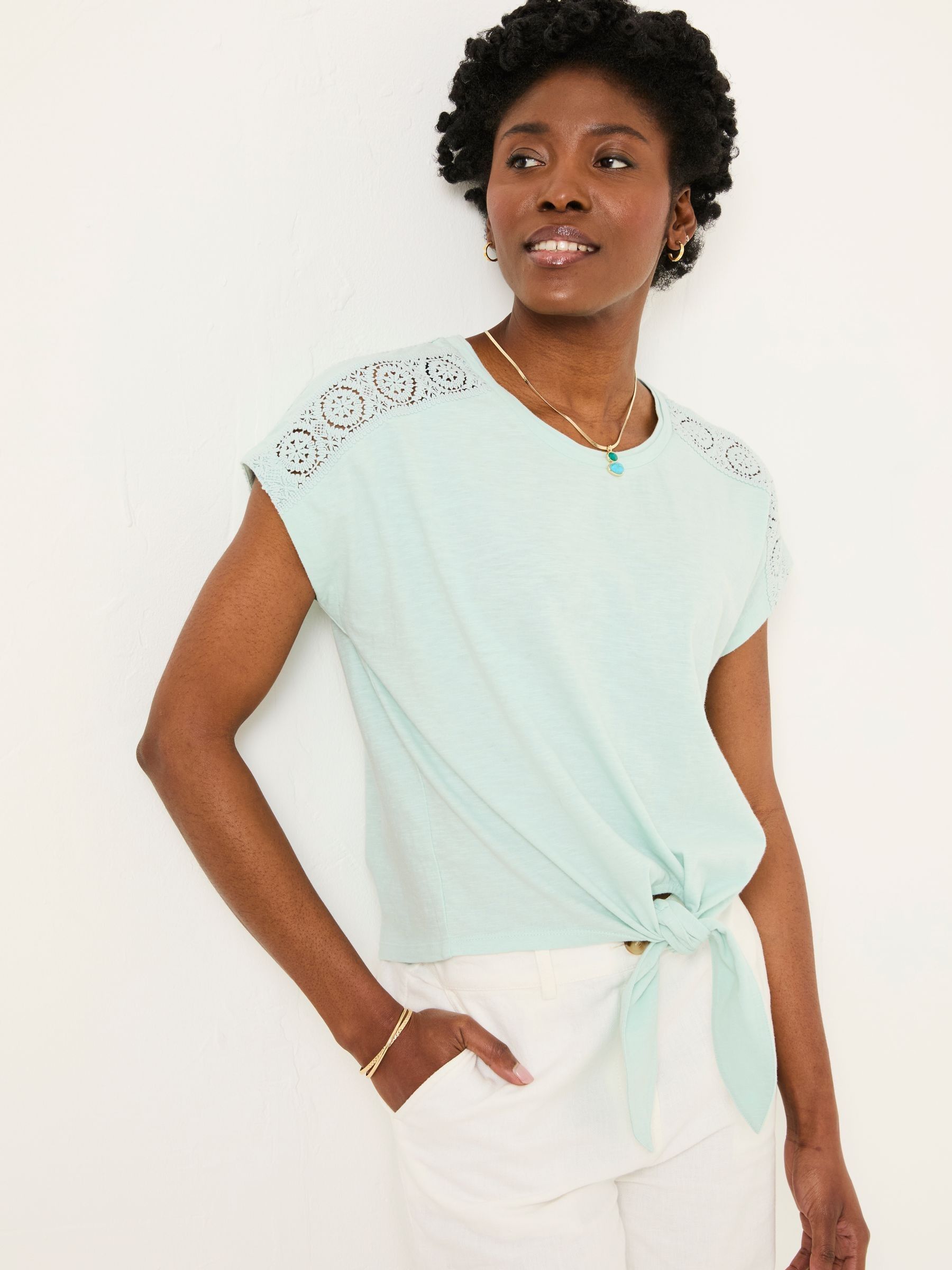 Mint Green Lace Tie Front T Shirt | FatFace ladies tie front t shirt