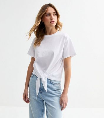 White Tie Front T-Shirt | New Look ladies tie front t shirt