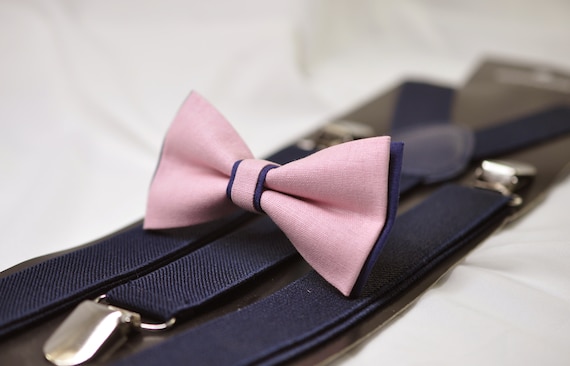 Navy Blue Dusty Pink Musk Pre Tied Bow Tie Bowtie + Navy Blue Elastic Suspenders Braces for Men / Youth / Boys Kids / Baby Infant Toddler - Etsy Canada pink and navy bowtie