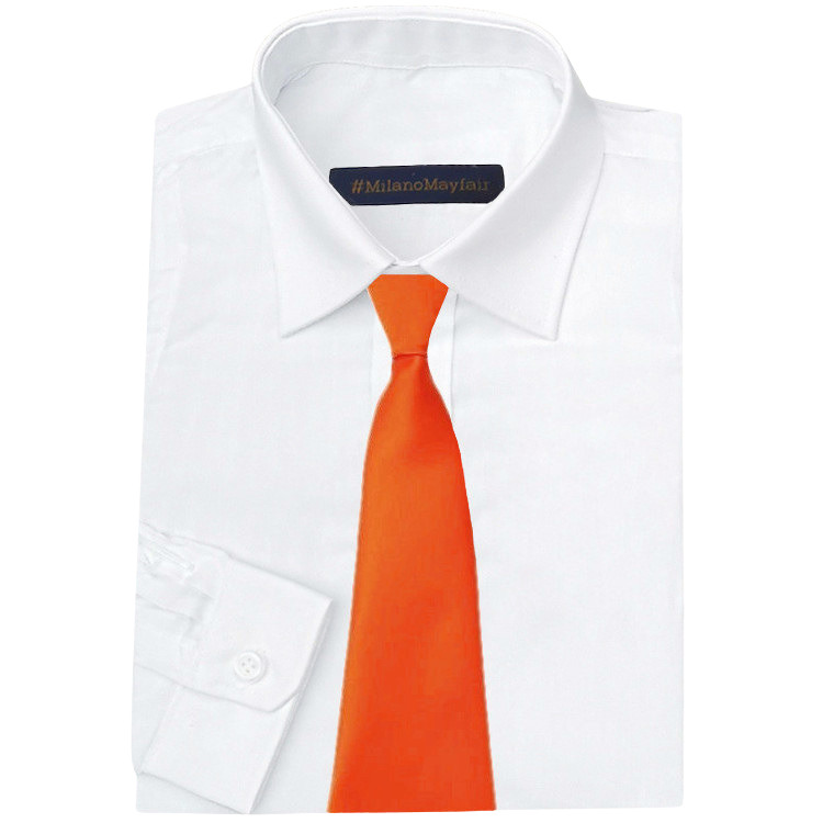 Boys White Long Sleeved Cotton Shirt \u0026 Orange Tie | Milano Mayfair - childrensspecialoccasionwear.co.uk orange tie shirt