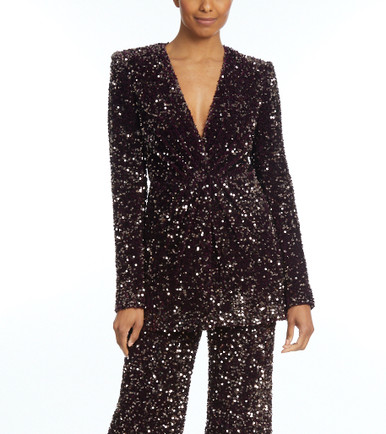 Glamorous Velvet and Sequin Blazer by Badgley Mischka badgley mischka sequin tie waist blazer