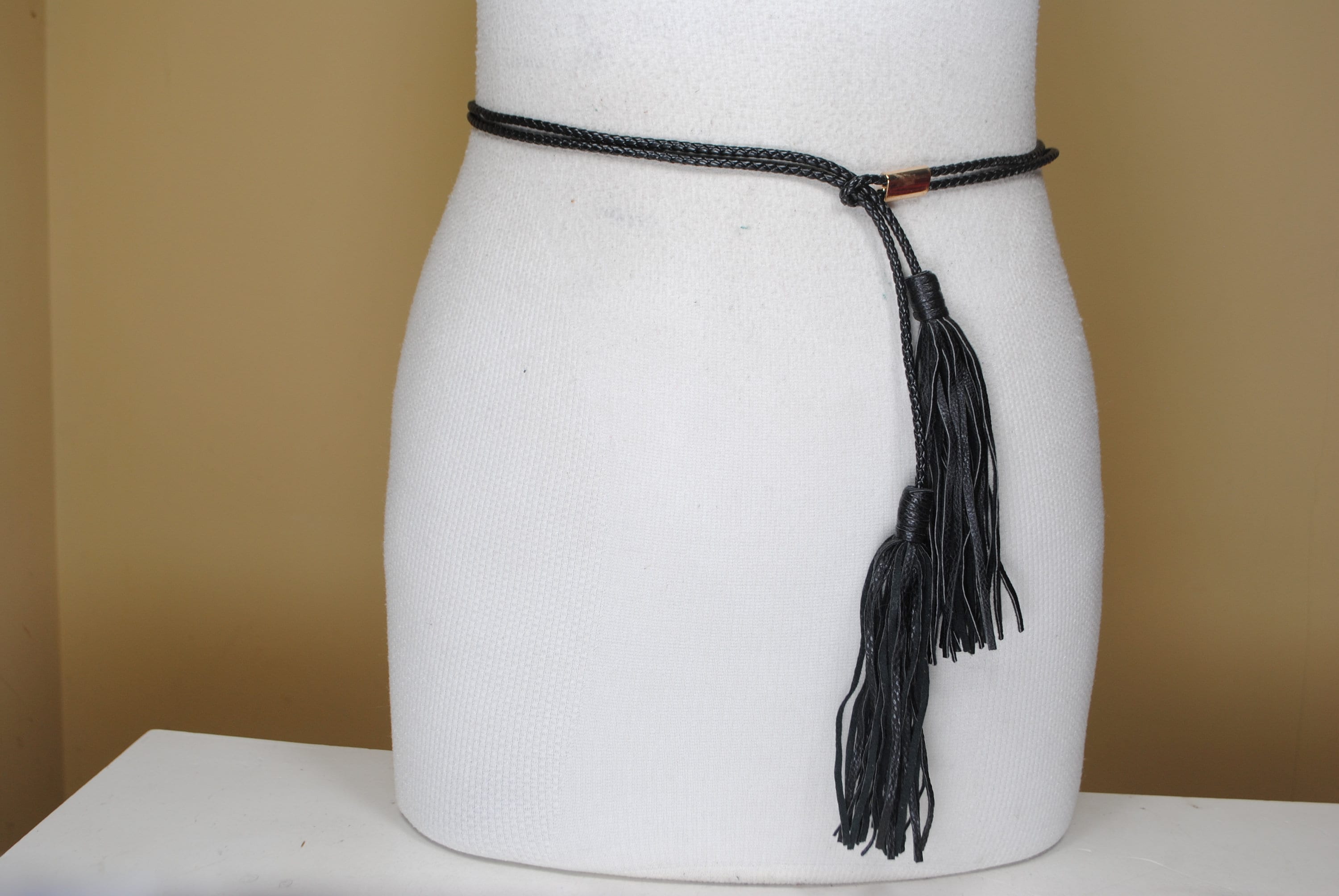 Braided Black Suede Tie Belt Black Skinny Woven Leather Tie-up Belt For Women, Wrap Fringe leather tie up belt